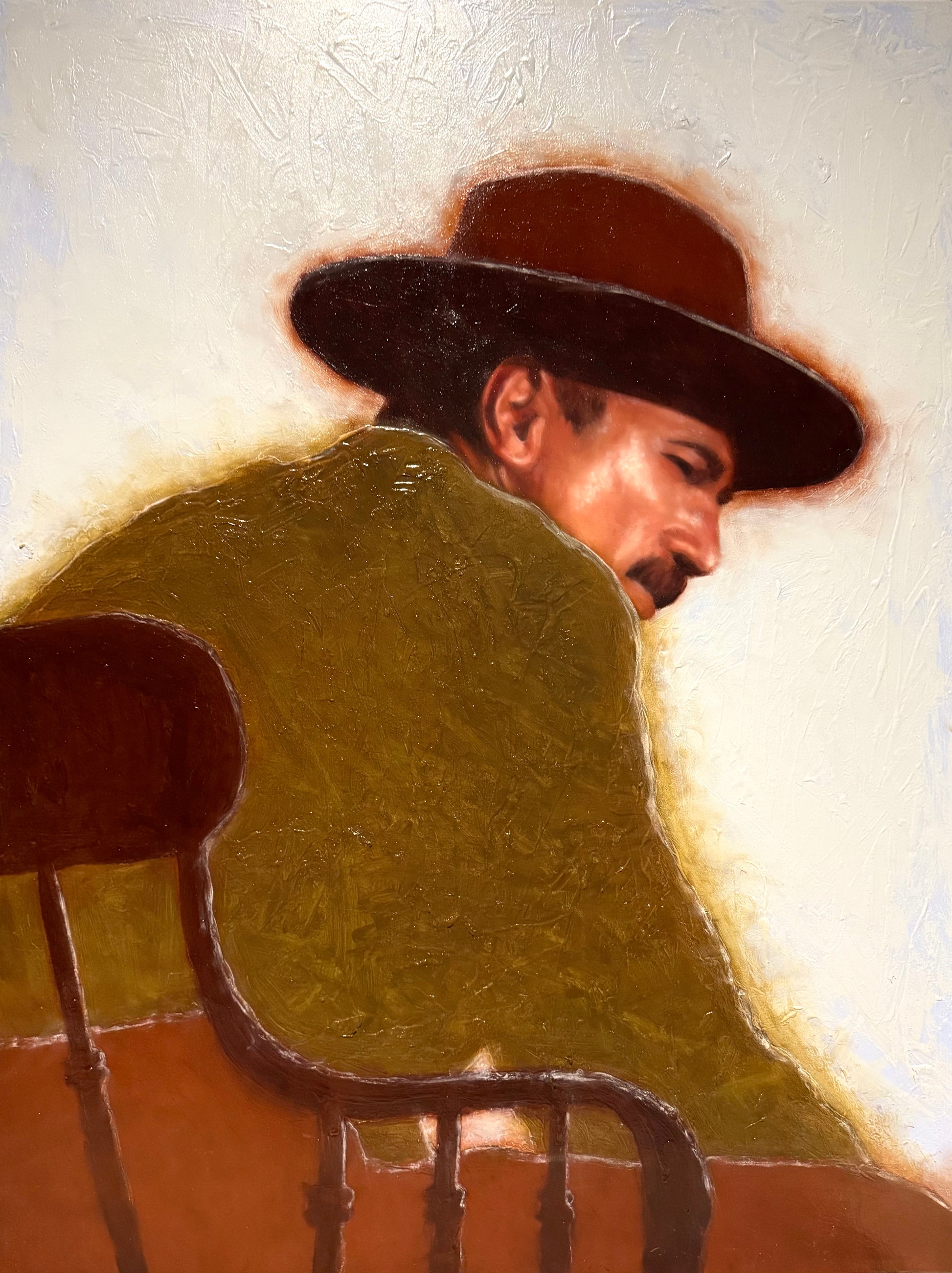 Seize the Day original 36"x48" oil painting. An original oil painting on linen in William Ballard's "Proof of Human" collection. The painting shows a still of Daniel Day Lewis in There Will be Blood.