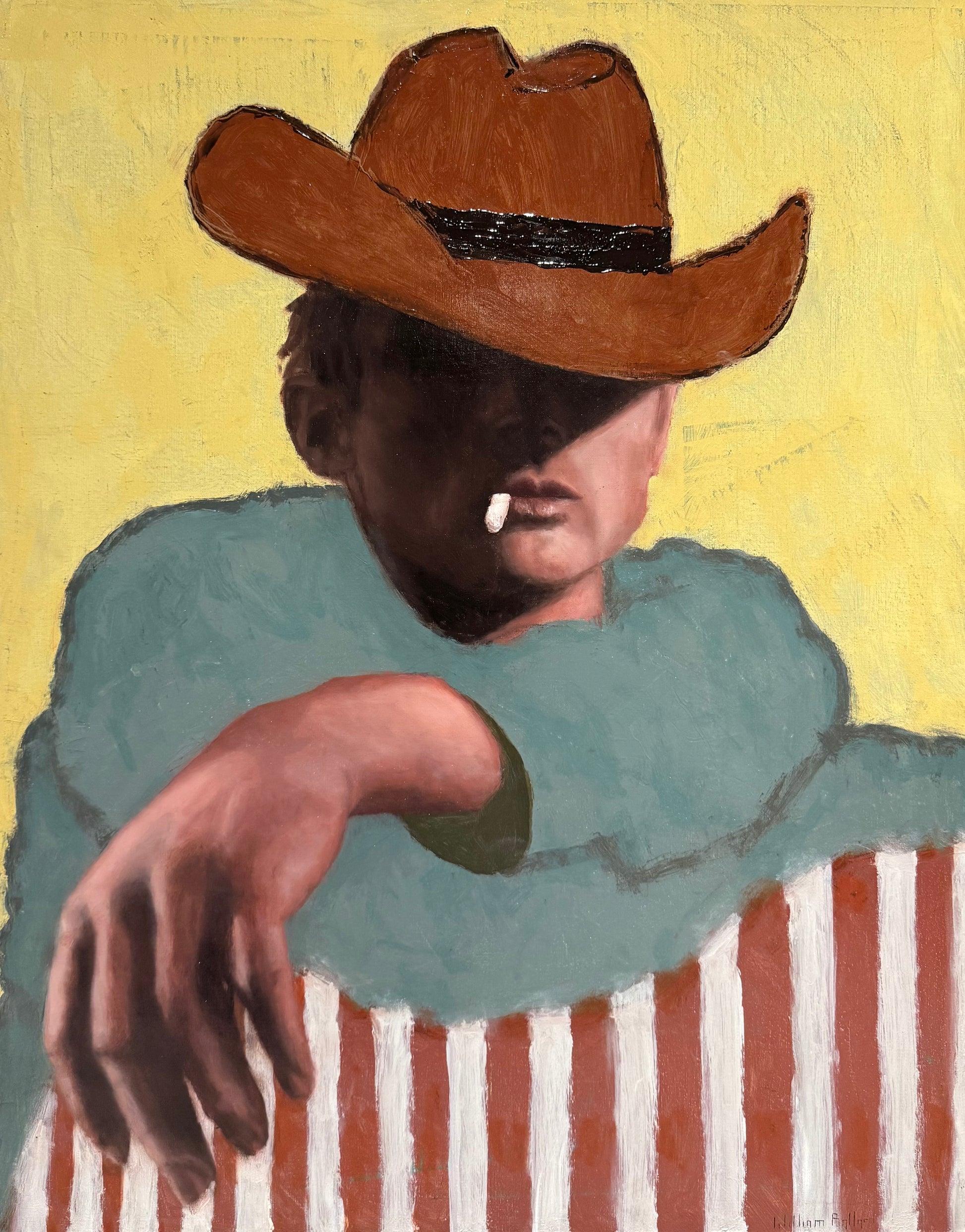 The Dean original 24"x30" oil painting. An original oil painting on linen in William Ballard's "Proof of Human" collection. The painting shows a still of James Dean from the film Giant.